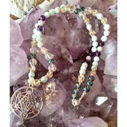 Accompagné de citrine, angelite verte, Améthyste, kunzite, Cristal aqua aura et cristal Angel Aura, ce magnifique collier vous offrira de très belles vibrations en lien avec la paix, la joie, l'abondance, la réalisation personnelle et l'intuition.