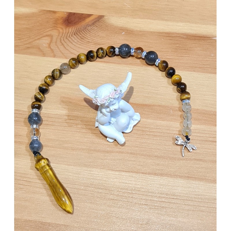 Un pendule en oeil de tigre avec ses perles de labradorite, citrine, quartz rutile et oeil de tigre qui en plus de vous soutenir dans vos questionnements, pourra être utilisé comme objet de protection énergétique. Des vertus qui nettoient les énergies négatives et ramènent beaucoup de lumière.