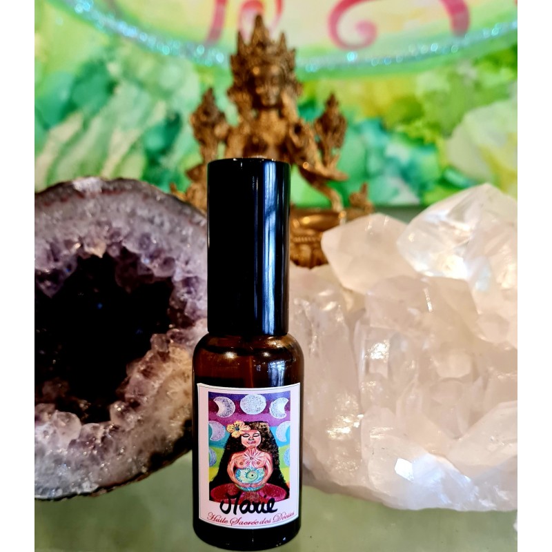 Offrir ou s’offrir une huile sacrée s’inscrit dans cette même vision. C’est un geste symbolique, une manière d’honorer son propre chemin intérieur et de créer un espace de douceur pour soi. Ces huiles réunissent l’énergie du ciel, invoquée lors de leur consécration, et celle de la terre, présente à travers les huiles végétales, les parfums naturels, les fleurs, les arbres et les minéraux qui les composent. Elles sont pensées comme des alliées pour accompagner des moments de présence, de rituel ou de retour à soi.
