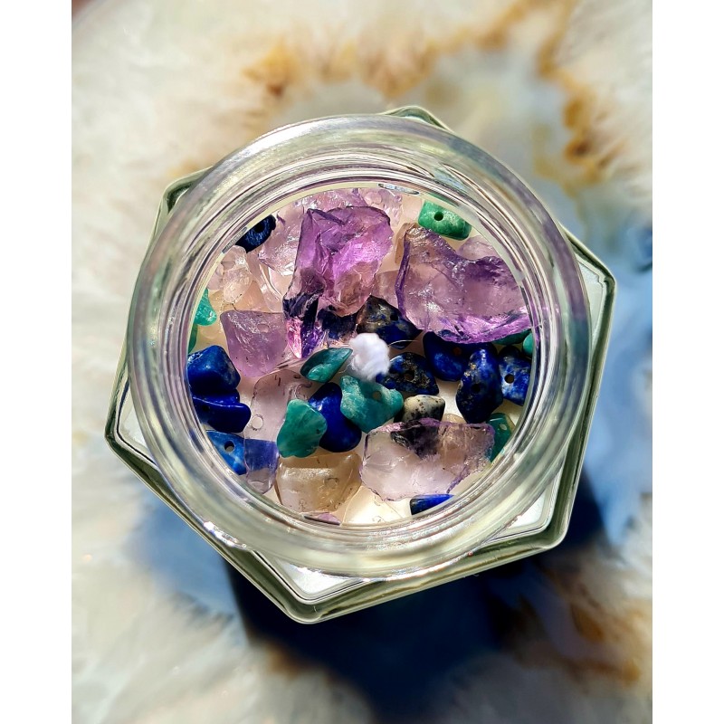 Cette bougie faite main aide au développement de l'intuition, du 3ème oeil, idéal pour les séances de divination ou de tirage de cartes.