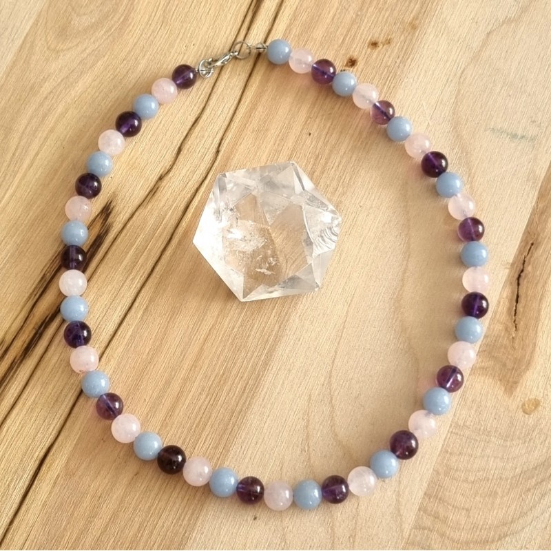 Un collier doux et rassurant aux tons pastels pour apporter apaisement, confiance, sérénité, douceur et amour.