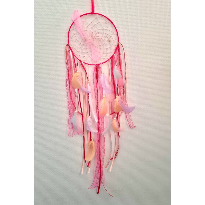 Un dream-catcher qui agrémentera parfaitement une chambre de petite fille et l'accompagnera dans un doux sommeil.