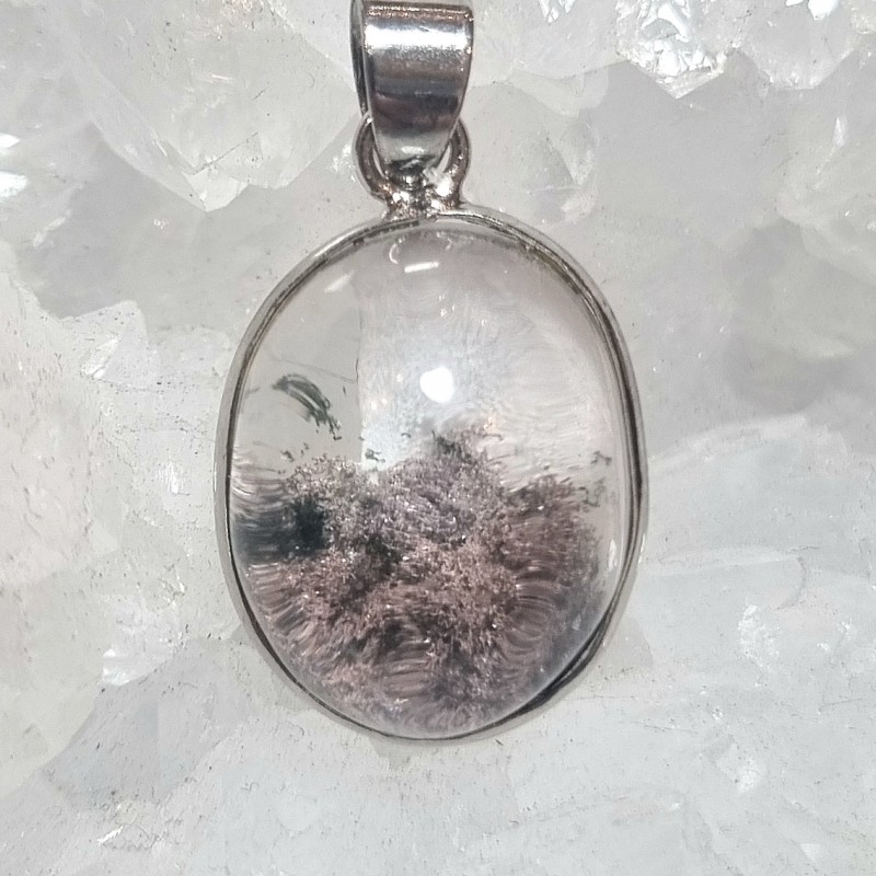 Sublime pendentif de lodolite, pierre des chamans et de la libération, chaque lodolite est unique par toutes ses inclusions qui nous laissent entrevoir tous ses mystères.