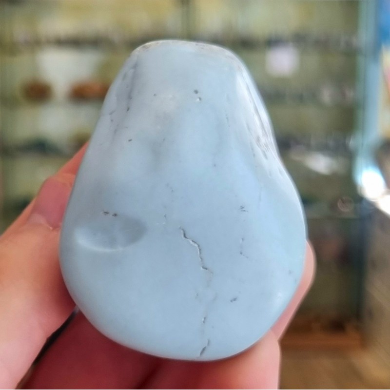 Très jolie chrysocolle talc. Pierre tranquille et utile qui facilite la méditation et la communication. Absorbe tous les types d'énergies négatives.