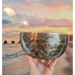 Bol Chantant 7 métaux du Népal façonné pendant la nuit de la pleine lune et avec un surplus d'or qui rend sa vibration et sa sonorité vraiment spéciales. Un magnifique objet sacré.