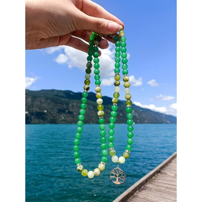 Très joli mala rempli de vie, de sérénité, d'abondance avec son arbre de vie en argent 925 et ses perles d'aventurine et serpentine.