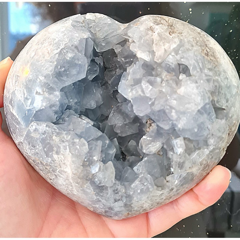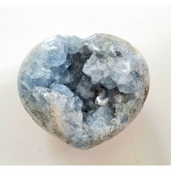 Sous sa forme de cœur, la célestine prend une résonance particulière : elle devient une alliée précieuse pour apaiser les blessures affectives, ouvrir à la tendresse et accueillir l’amour – pour soi comme pour les autres.
