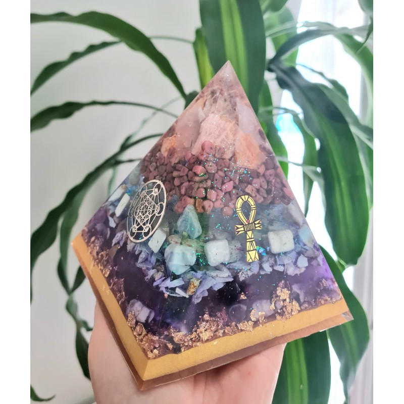 J’ai créé une petite collection que je vous propose mais chaque pyramide est unique pour chaque personne. Ainsi les couleurs peuvent être légèrement modifiées et les énergies sont adaptées à vos besoins spécifiques.