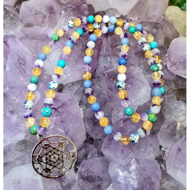 Un magnifique mala lumineux avec de très belles pierres pour vous apporter de la légèreté, de la joie de vivre ou encore de la chance.