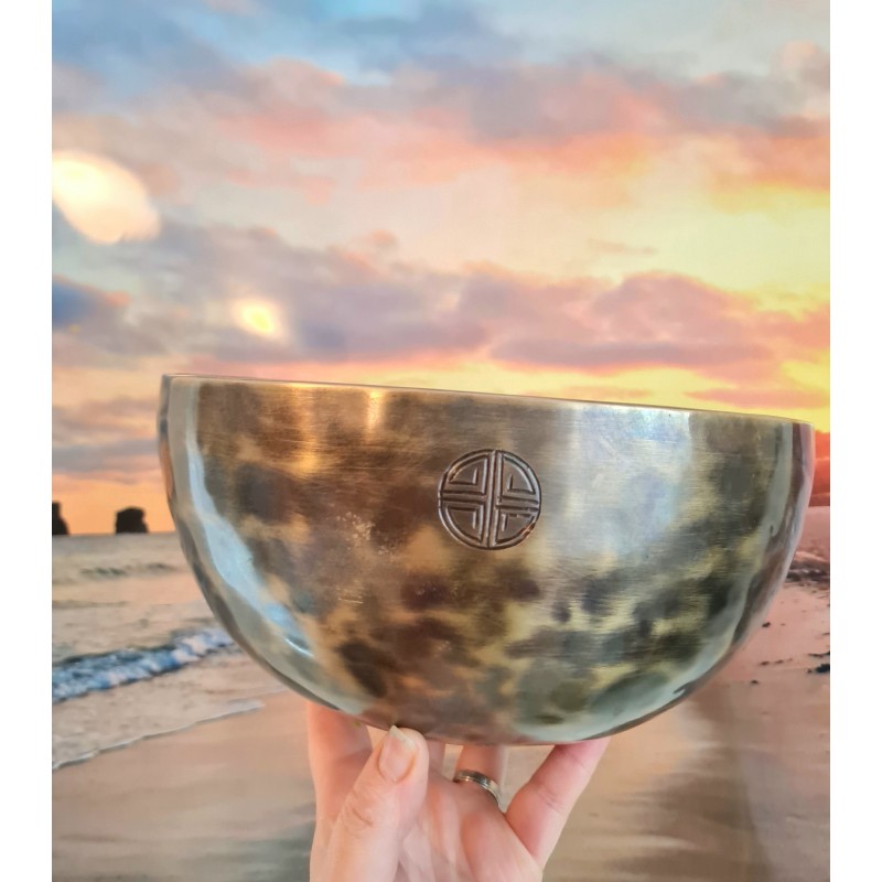 Bol Chantant 7 métaux du Népal façonné pendant la nuit de la pleine lune et avec un surplus d'or qui rend sa vibration et sa sonorité vraiment spéciales. Un magnifique objet sacré.